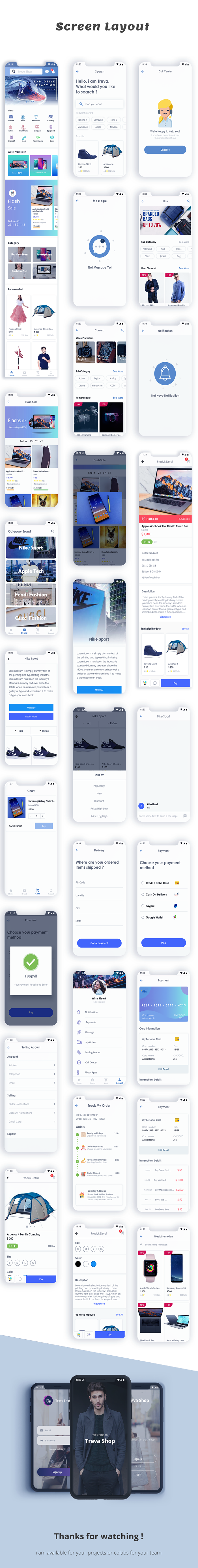 It contain 35 Screens with different type of UI, E Commerce UI kit can be save your time to code all Front end layout.